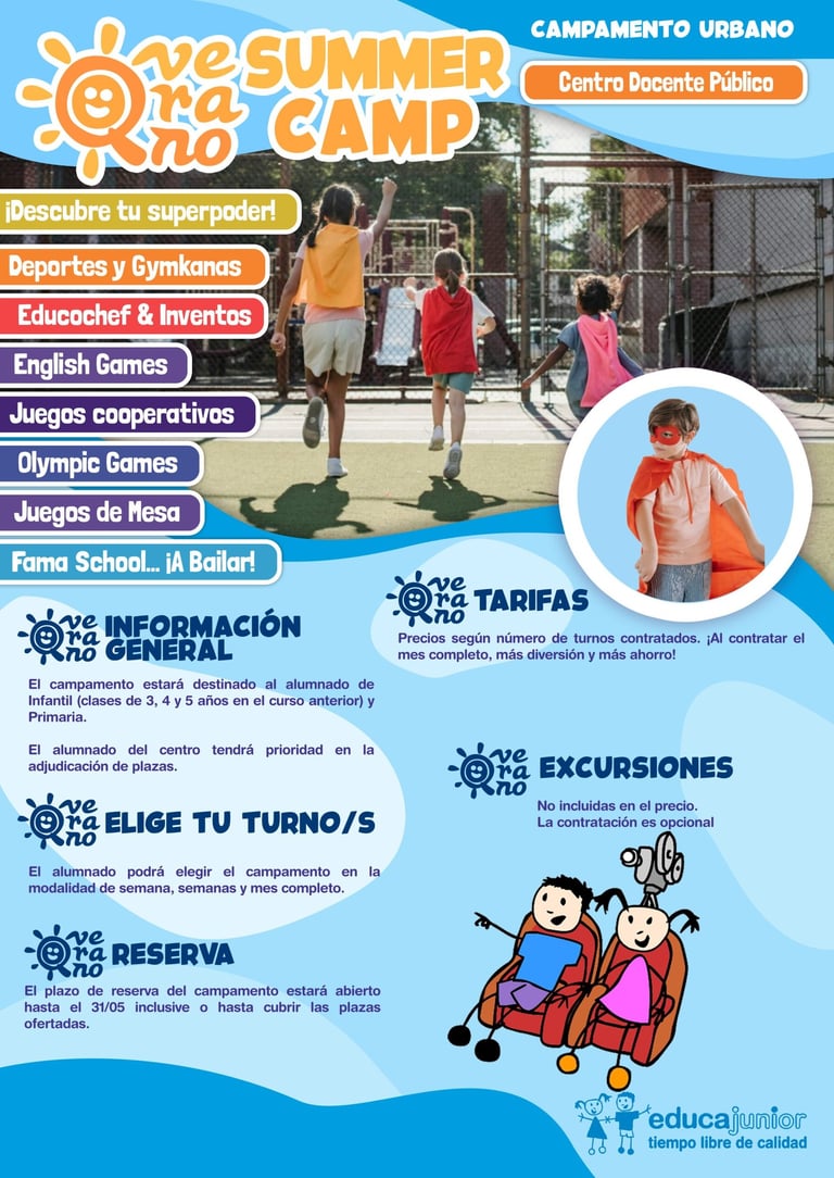 Presentamos la temática de nuestra Escuela de Verano: «Descubre tu Superpoder». permite a nuestro alumnado explorar y potenciar sus habilidades y talentos únicos. A través de actividades lúdicas como diseñar su propio superhéroe, enfrentarse a retos creativos, deportivos, científicos y trabajar en equipo, descubrirán sus fortalezas personales.